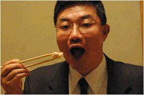 「かには、焼くことによって旨味が増すんですよ、いい味です。アッツアツ、ウッマウマ」